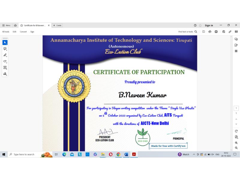 The Department of Civil Engineering, Annamacharya Institute of Technology and Sciences, Tirupati organized Tech Fest ASTHRA 2K25 on 7th & 8th April 2025. The fest featured innovative events such as Bridge Testing with Waste Materials, CAD Contest, Video Making, Photography, and a fun-filled Treasure Hunt. Students from various colleges showcased their creativity, technical skills, and teamwork throughout the events. The competitions saw enthusiastic participation and were judged by experienced faculty and industry experts. Prizes were awarded to winners and runners, making the event a grand success and a memorable experience for all.