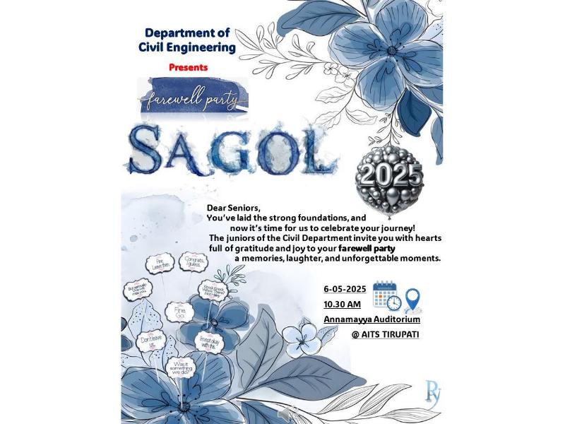 The Department of Civil Engineering, Annamacharya Institute of Technology & Sciences, Tirupati, celebrated Farewell Day on 6th May 2025 at the college auditorium. The principal emphasized the importance of future planning in core branches. The Civil HOD highlighted the significance of Farewell Day and Professor Guru Jawahar, along with event coordinator Mrs Meenu Priya, successfully conducted cultural activities. The event fostered enthusiasm among the students for their academic journey ahead.