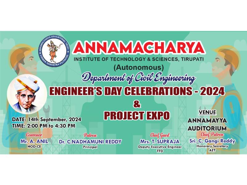 The Department of Civil Engineering at Annamacharya Institute of Technology & Sciences, Tirupati, celebrated Engineer’s Day on 14th September 2024. The speakers highlighted moral values, career growth in civil engineering, and the role of engineers in society. The event saw active participation from faculty and students.