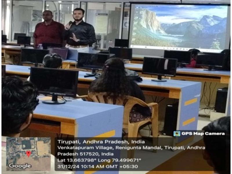 The Department of Computer Science and Engineering, AITS Tirupati, in collaboration with the Alumni Association Cell, organized a Guest Lecture on 31st December 2024 as part of its Lecture Series.