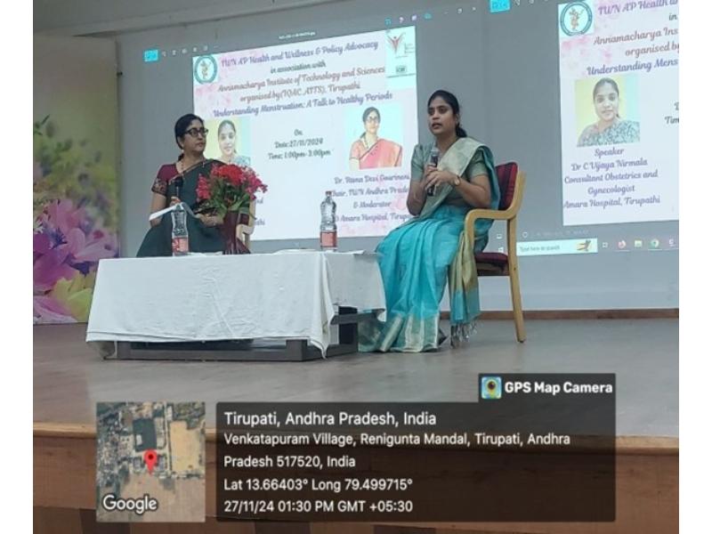 Dr. C. Nadhamuni Reddy, Principal, welcomed the gathering and introduced the speakers. Dr. Ramadevi addressed common menstrual health issues like PCOD and hormonal imbalances. The interactive session covered topics such as irregular periods, mood swings, and period-related discomforts, with students actively participating through Q&A.