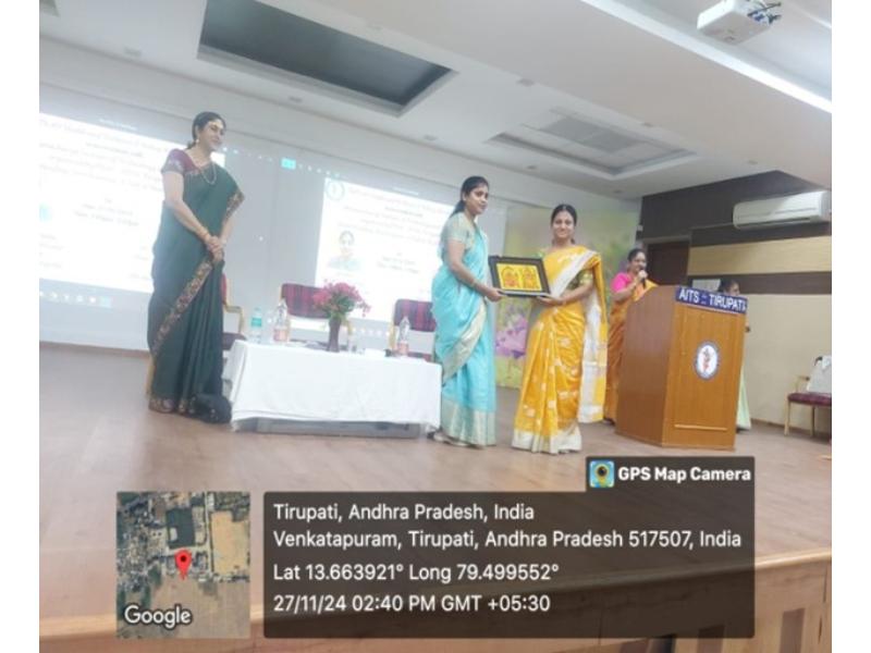 Dr. K. Ramya (IQAC Coordinator), Dr. P. Krishnaveni (Associate Dean, HBS), and Dr. K. Haritha (Head, MBA) felicitated the guests. The event concluded with a vote of thanks by Dr. K. Ramya.